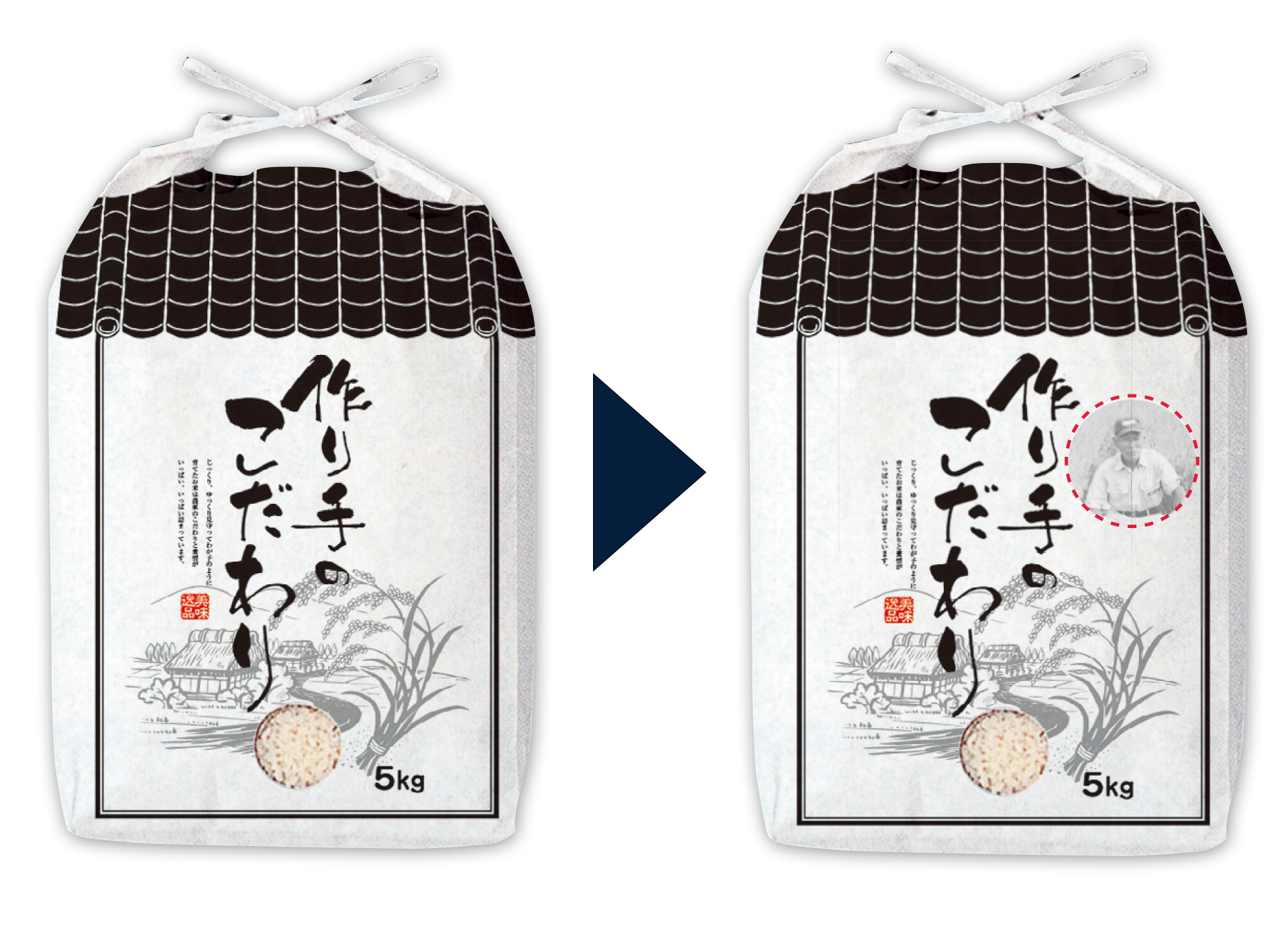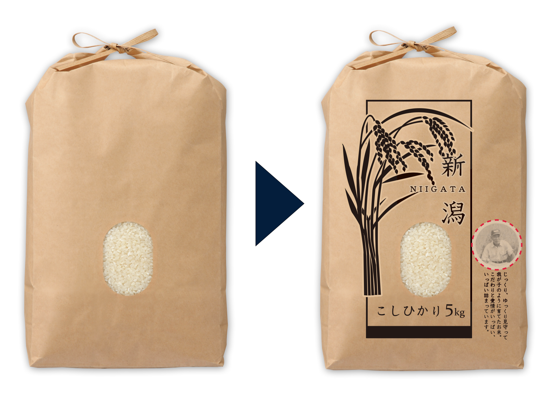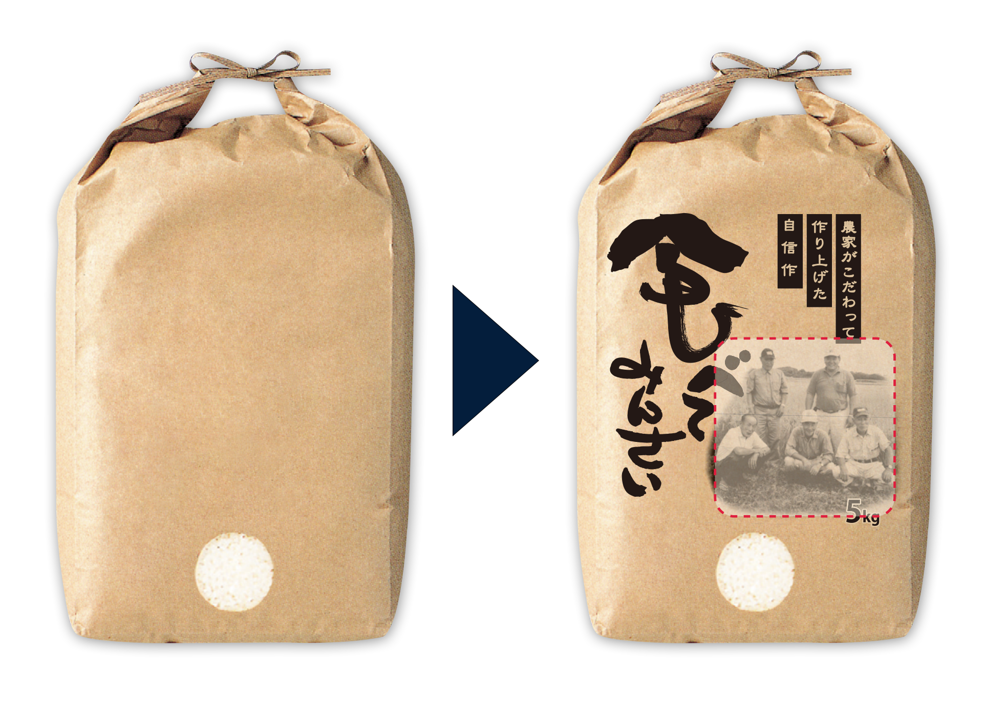 他にはないこだわりの米袋が作りたい!!既存の米袋に手軽にイメージを変えたい!!