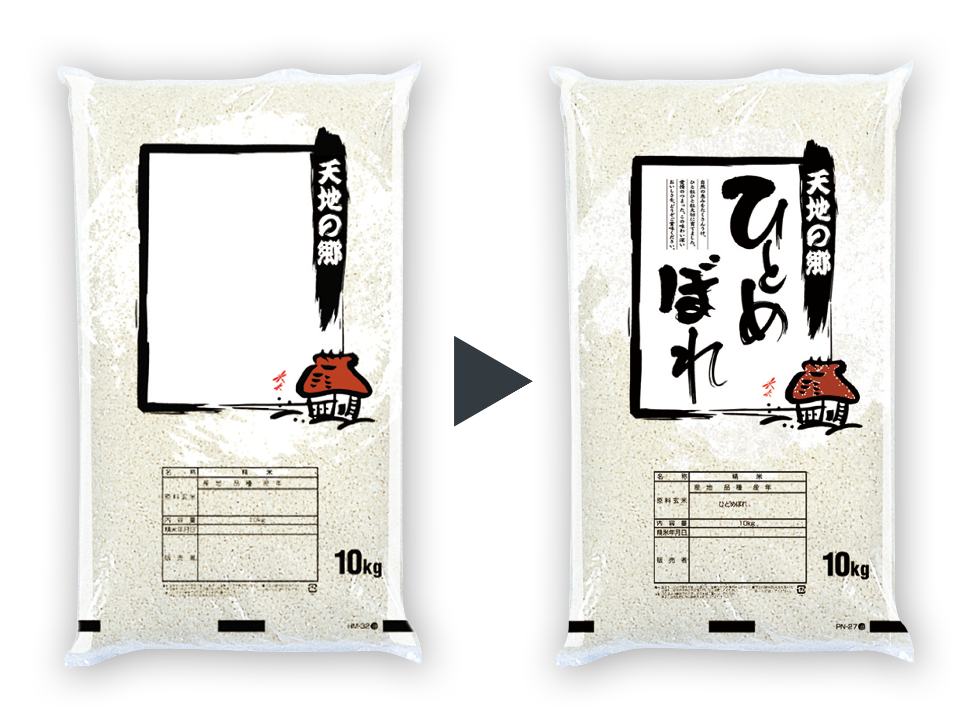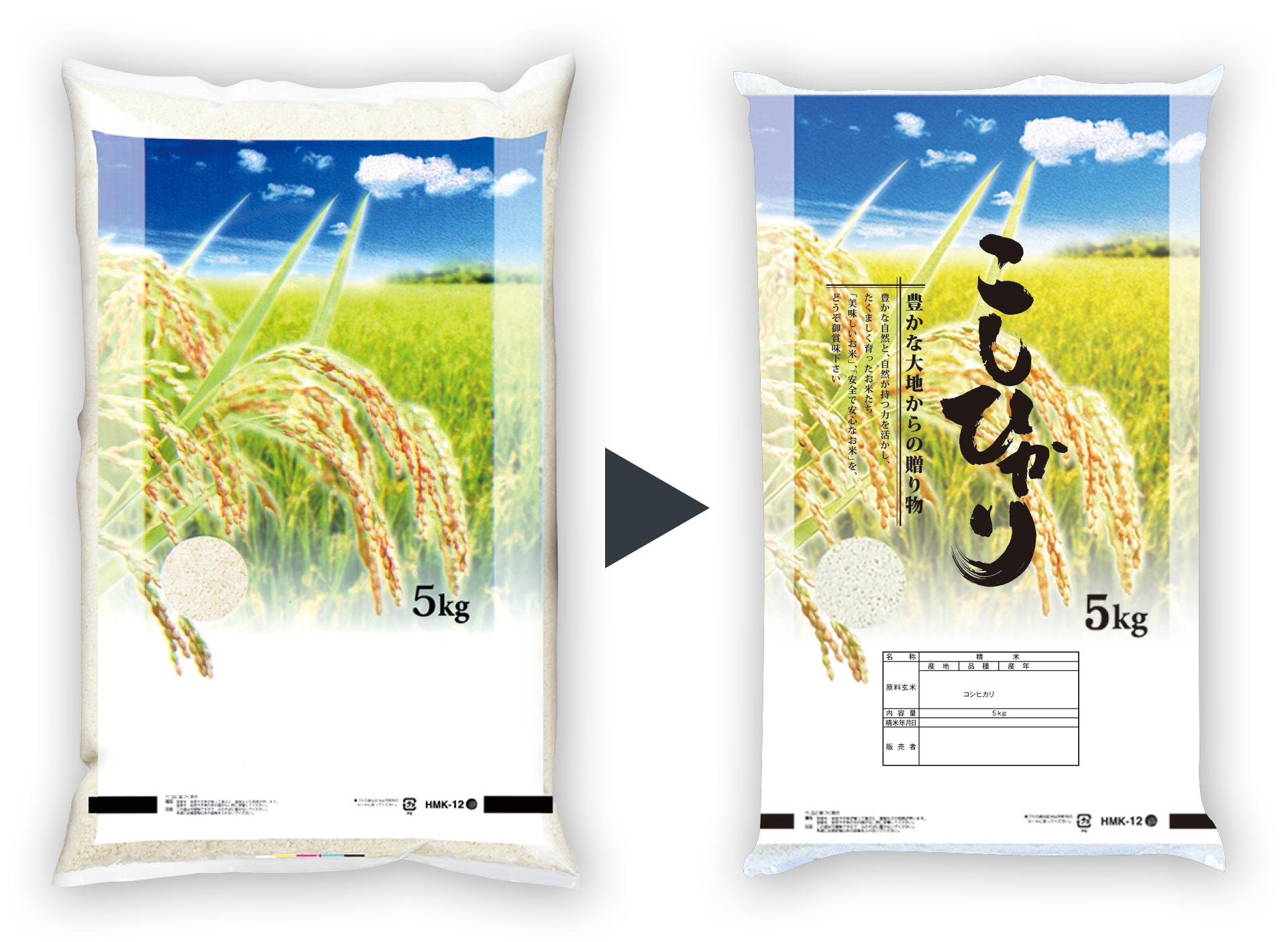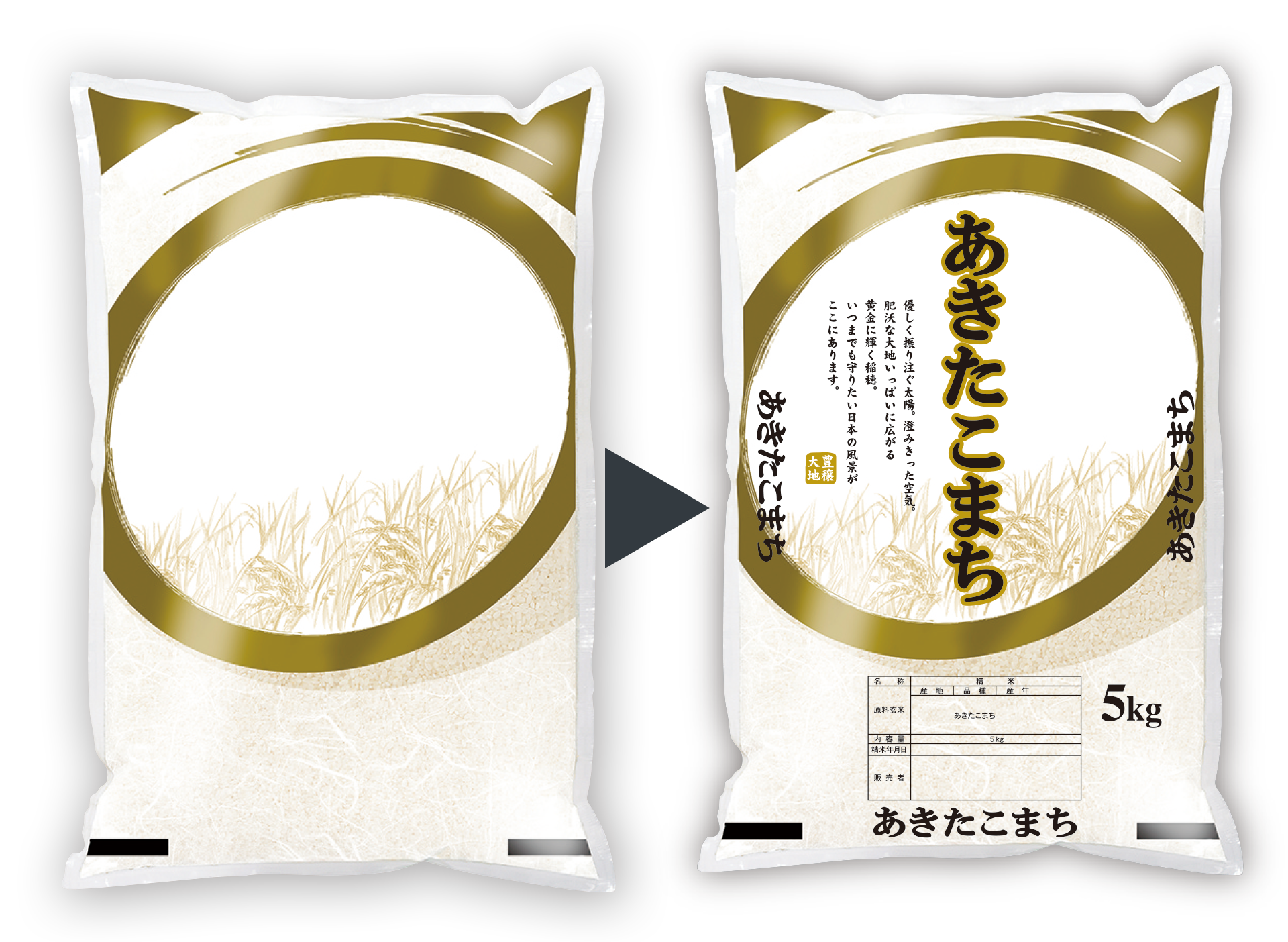 店名、表示欄内容、バーコードなどの後刷りが可能です。 県産、複数原料米、ブレンドなども印刷できます。お気軽にお問い合せください。