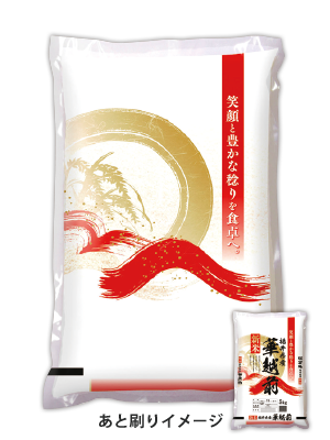 青々とした稲穂の風景と、豊かに実った稲穂をシンプルにレイアウトしたデザインです。